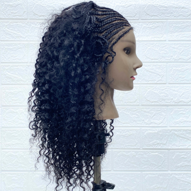 Half cornrow and Half Human hair Mix wig for Children and Ladies with small head size