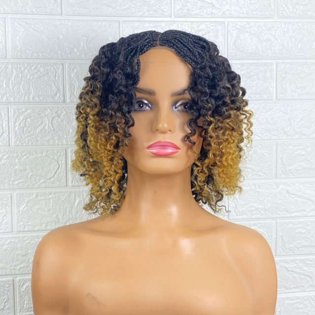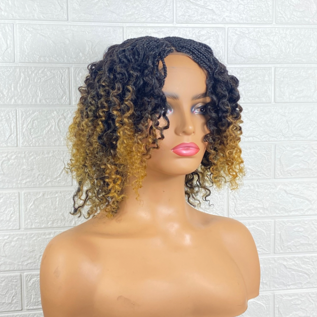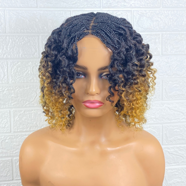 Afro Boho Box braid Wig Goddess braids Afro curly human hair blend Short wig for Girls and Women