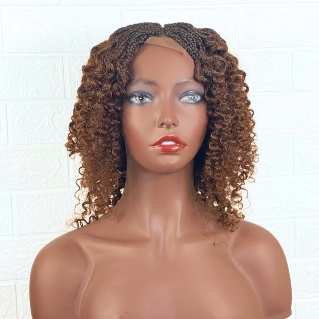 This Beautiful Boho braided Wig is. made with curly Afro kinky human hair blend and soft Lush Synthetic braiding hair